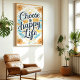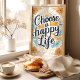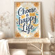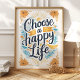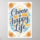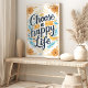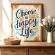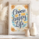 Irradie positividade com esta vibrante impressão artística "Escolha uma Vida Feliz". A citação manuscrita toma o centro das atenções, cercada por flores amarelas alegres e um sol radiante, evocando calor e otimismo. Os acentos azuis adicionam um toque de tranquilidade, criando um design equilibrado e edificante. Perfeito para adicionar um toque de sol a qualquer cômodo.