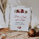Flores de cor d'água pintadas e flores escamoteadas e escrita em letras pretas. Escolha um assento, não um lado, sinal de casamento.