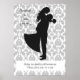Belo grande poster para sua cerimônia de casamento com um fundo branco e cinza, acentuado com uma grande silhueta de um noivo tirando sua noiva de seus pés de alegria. Personalizado com seus nomes e data de casamento. Enquanto na parte inferior estão as palavras "Hoje, duas famílias se tornarão uma só. Por favor, escolha um lugar, não um lado.