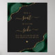 Uma elegante placa de casamento convidando convidados a escolher um lugar, não um lado. O texto editável aparece na caligrafia dourada de escrita manual e na letra da placa, com uma pequena silhueta cardíaca opcional. Emerald green watercolor agate designs aparadas com falso cintilação dourado enquadra a mensagem em dois cantos num fundo preto de ardósia escura. Veja a nossa coleção para o convite de casamento e o diário de papelaria.