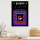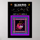 O escorpião é o símbolo gráfico do sinal de nascimento, Scorpio. Esses nasceres entre 23 de outubro e 21 de novembro são nasceres da constelação de Scorpio. Algumas das características de personalidade de Scorpio são a testemunha, possuindo excelente paixão por aqueles ideais em que acreditam. Eles tendem a dominar nas relações. Também tendem a ser idealistas. Este poster muito atraente mostra um escorpião muito bonito, sorridente em rosa, laranja e amarelo. Também é exibida a constelação cósmica de estrelas que representa Scorpio. Enquadrar nosso Scorpion é um padrão multicolorido de formas que se assemelha a um quadrado de retalhos usado em fazer de colcha. As cores neste quadro de formas são roxa, azul, laranja e amarela. Mais um símbolo de identificação é o símbolo laranja que se assemelha fortemente a um escorpião que você encontrará centrado entre as datas de 23 de outubro e 21 de novembro.