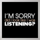 "Sinto muito se pareço que estava escutando?" - Essa design de camiseta assombrosa e cheia de atitude é perfeita para todos aqueles que querem que as pessoas saibam o que realmente pensam.