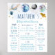 Bem-vindos aos convidados do seu partido com um sinal personalizado adorável. Enquadre o sinal e exiba-o numa mesa perto da entrada ou monte a espuma poster e mostre-a fora em um calcanhar. Este design bonitinho apresenta planetas coloridos com estrelas falsas de folha de ouro.