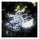 Um pato branco feliz nadando dentro a nebulosa.