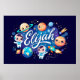 Linda arte de parede mostrando uma cena espacial mágica com planetas adoráveis, astronautas e maravilhas celestiais com o nome Elijah. Perfeito para quartos, berçários ou qualquer quarto de amante espacial. ✨ Outros nomes disponíveis mediante pedido!