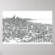 Desenho arquitetônico de Espanha de Cádis em estilo gráfico.
