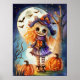 Elevem seu Decor de Halloween com este Poster de Espantalho Bonito! Preparem-se para se encantarem com este poster encantador que apresenta um espantalho feminino fofo na floresta assustada. O brilho de uma lua de cheio e as abóboras de sorvete acrescem à magia. Esta poster é a maneira perfeita de celebrar a estação assustadora com um traje de beleza!
