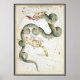 Ilustração vintage de astronomia e antiga carta estelar celeste apresentando as constelações de Draco e Ursa Menor (a Ursa). Draco é uma constelação no extremo norte do céu e é latim para dragão. Foi uma das 48 constelações listadas pelo astrônomo grego do século II Ptolomeu e permanece uma das 88 constelações modernas hoje. O polo norte da eclíptica está em Draco. Draco é circumpolar a partir de latitudes do norte, o que significa que nunca se põe e pode ser visto a qualquer hora do ano. Ursa Menor (Pequena Ursa) é uma constelação localizada no extremo norte do céu. Assim como a Grande Ursa, a cauda da Pequena Ursa também pode ser vista como a alça de uma concha, daí o nome norte-americano, Pequena Concha: sete estrelas com quatro em sua tigela, como sua parceira, a Grande Concha. Ursa Menor tem