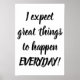 Digno de nota, este poster preto e branco apresenta uma adorável citação "Eu espero que coisas excelentes aconteçam TODOS OS DIAS!" em texto preto cursivo e divertido. Tão inspirador, compre o seu hoje!