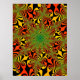 Este é o tipo de poster que faz os novos espectadores dizerem coisas como "uau", "legal", e "paradeiro?". Essa versão também tem uma ilusão ótica mais fácil de ver na poster. Olhem para o centro. Primeiro você vê uma indentação redonda, e quanto mais você olha mais fundo ela fica. Eu me aproximo de um fractal da maneira que um fotógrafo se aproxima de uma paisagem ou de uma floresta. Eu exploro e caço por aí por aquela foto perfeita. Algo reconhecível, especial e único. Sendo uma criança dos anos 60 e 70, às vezes eu pego algo que agora é considerado retrô. Este design em particular é um exemplo disso. Dê uma olhada nas 4 versões da série. Não estou interessado em fractais porque são fractais, mas por causa da beleza que consigo encontrar neles. Dê uma olhada nos meus outros trabalhos.