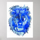 um design decorativo de uma cabeça de leão masculina em cores azuis surreais como um decorativo ^poster impressão. um grande gato peludo azul.