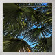 el espiritu del verano expresado en hojas de palmera , la luz del sol y el cielo azul