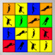 silhuetas de atletas sobre o fundo de quadrados coloridos