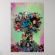 Veja este poster de filme do Suicida Squad explosion em nuvens de cogumelo, com todos os personagens principais dentro da nuvem, como Joker e Harley Quinn.