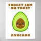 Caráter bonitinho do Avocado com texto que diz: "Esqueça a geleia na torrada, Avocado".