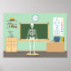 Um esqueleto na frente de uma aula de ciências da escola. Esta design parece realmente eficaz nestes Poster