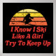 Esta engraçada instrutora de viagem de esqui bunny patrulha design mostra "eu sei que esquio como uma garota tentando acompanhar". Perfeito para pai de esqui ou mãe de esqui que adora esquiar e que tem orgulho de dizer "Eu adoro esqui". O design apresenta 80, 90 e um pôr do sol. É excelente para dia de as mães ou dia de os namorados.