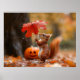 Poster Esquilo bonito com guarda-chuva de folha - Chuva d