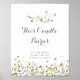 Este sinal de queimaduras coloridas de flores silvestres é perfeito para um casamento rústico. O design apresenta uma aquarela pintada manualmente, lindas flores rosa, pincéis, azuis, marinhos, amarelas, roxas e verdes selvagens.