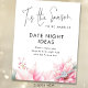 Esta é a estação Poinsettia Date Ideas Sign para Chá de panela de Natal. Disponível digitalmente e impresso. Esta é a estação em um roteiro na moda não editável. Personalize facilmente o resto das palavras. Com uma bonito poinsettia cor-de-água rosa e ilustração do anel do noivado.