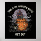 Esta design de Halloween assustadora, mas humorística, apresenta um gato preto rabugento sentado em frente a uma abóbora gigante, ameaçadora e uma casa assombrada, silenciada por uma lua de cheio. O texto "ESTA É A MINHA CASA HAUNTED" e "SAIR" é uma mensagem perfeita, direta e engraçada para aqueles que querem que seu espaço seja assustador e ininterrupto.