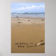 Póster está escrito na areia numa praia