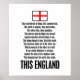 Palavras famosas do excelente William Shakespeare, do rei Richard II... "Este trono real de reis, esta ilha de ceto, Esta terra de majestade, este assento de Marte, Este outro Éden, demi-paraíso, Esta fortaleza construída pela Natureza contra a infecção e a mão da guerra, Esta raça feliz de homens, este pequeno mundo, Esta pedra precioso no mar da prata, que serve no escritório de uma parede ou como um fosso defensivo a uma casa, Contra a inveja de terras menos felizes, Esta trama abençoada, esta terra, este reino, esta Inglaterra."