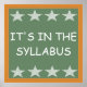 Você está cansado de seus alunos fazerem perguntas que poderiam ser respondidas simplesmente lendo o programa de aula. Ponha um ponto final nessas questões chatas colocando esta poster na sua sala de aula. O poster exibe uma imagem de um quadro e indica em letras brancas, "É NO SÍLABO".