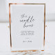 Adicione um memorial sincero ao seu casamento com este sinal "This Candle Burns in Loving Memory". Perfeito por acrescentar uma homenagem à sua recepção de casamento, este sinal minimalista pode ser colocado ao lado de uma vela para lembrar aqueles que são carinhosamente perdidos. Simplesmente personalize, ordene, defina em um quadro e exiba para uma lembrança significativa e elegante.