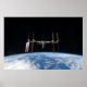 Voltada pelo horizonte da Terra e pela escuridão do espaço, a Estação Espacial Internacional é vista pela Space Shuttle Discovery à medida que as duas naves espaciais começam sua relativa separação. No início, a tripulação STS-128 e Expedição 20 concluíram nove dias de trabalho cooperativo a bordo do vaivém e da estação. O desacoplamento das duas naves espaciais ocorreu às 14:26. (CDT) em 8 de setembro de 2009.