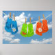 Inclinação colorida pendurada numa linha de roupa.