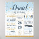 Um toque perfeito para a festa de um ano do seu menino! Este lindo Cartaz de Estatísticas de Nascimento e Metas do 1º Aniversário Twinkle Twinkle Little Star é perfeito para emoldurar e colocar em uma mesa de sobremesas/bolos e usar como decoração do quarto da criança posteriormente. Ótimo como um adereço para fotos muito especiais e memoráveis de aniversário! Também faz um presente maravilhoso e único!