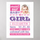 Poster Estatísticas de Nascimento de Bebê Menina Rosa Mod