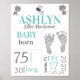 Poster Estatísticas de Nascimento de Bebê Sinal de Pegada