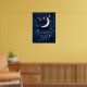 "Twinkle Little Star Marinho Baby Nursery Stats Poster." O nome, data e estádios de nascimento do seu bebê num poster que vai iluminar a decoração do quarto. Marinho azul-mão pintou o fundo de madeira de aquarela com sotaque dourado e branco suave das estrelas, o texto do roteiro da lua e da tipografia que diz, "Twinkle, twinkle Little Star." Arte de Audrey Jeanne Roberts, artista licenciada internacionalmente reconhecida, copyright.