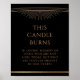 Este Candle Burns Preto Sol Lua Estrela Casamento Memorial Candle Poster apresenta raios de sol dourados em um fundo preto com o seu texto abaixo em moderno roteiro dourado. Uma maneira bonita de lembrar e homenagear amigos e familiares no dia do seu casamento, que já partiram.