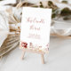 Este sinal de queimaduras florais graciosas da caligrafia de vela é perfeito para um casamento rústico. A design apresenta uma cor de água branca, burlada, rosas cor-de-rosa e folhas de queda.