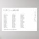 Este poster de gráfico de assentos apresenta um design minimalista moderno e um layout de três mesas. O cabeçalho de texto do script é uma imagem que não pode ser editada. A imagem de cabeçalho pode ser redimensionada para ajustado qualquer tamanho de poster. Todo o outro texto é totalmente editável. Para personalização mais avançada deste design, basta selecionar o botão "Personalizar" acima.