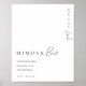 Este bar mimosa apresenta um roteiro de caligrafia moderno e design minimalista. Os cabeçalhos de texto do script são imagens que não podem ser editadas. A imagem de cabeçalho pode ser redimensionada para ajustado qualquer tamanho de poster. Todo o outro texto é totalmente editável. Para personalização mais avançada deste design, basta selecionar o botão "Personalizar" acima.