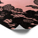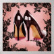 Calçados pretas de estileta em fundo cor-de-rosa com rendas.