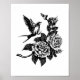 Poster Estilo de tatuagem de aves e rosas