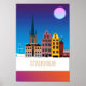 Suecia bela capital de Estocolmo, ilustrada. Representa as cores características e o porto.