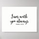 Eu estou com você sempre Bíblia do versículo Matthew 28:20, poster de arte. A bela citação está em preto. Você pode personalizar a cor de fundo. Podemos personalizar este impressão. Se preferir uma citação diferente, por favor contacte-nos.
