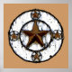 Uma estrela doce do Texas dentro de um círculo cercado por mais 4 estrelas.