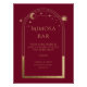 O Bar Celestial Vermelho Dourado Mimosa Sun Moon Stars Astronomy Cósmic Cósmic Galaxy Event Poster apresenta um sol dourado, lua e estrelas armadas sobre um fundo vermelho. Dentro é o seu texto personalizado. Projetado por ©2024 Evco Studio www.zazzle.com/store/evcostudio