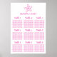 Simples desenho em branco e rosa claro de um gráfico de assentos de estrelas/mar. Ideal para ajudar seus convidados a encontrar seu lugar no seu casamento. Edite este gráfico de mesas de assentos de casamento com seus próprios assentos e nomes de convidados. A design de casamento rosa, estilo moderno e fascinante praia, parte do papel de carta de casamento da estrela do mar. Design e desenho de Sarah Trett.