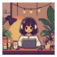 Nessa cena aconchegante de 8 bits, um personagem se senta em uma mesa com fones de ouvido, imerso em seus estudos. Cercado por plantas interiores, livros e iluminação suave, o ambiente é perfeito para a solidão focada. A estética lo-fi acrescenta um toque nostálgico e calmante, fazer-o um cenário ideal de concentração e relaxamento.