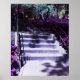 Uma cena de uma trilha num parque com um esquema de cor de tom roxo.