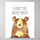 Póster Eu Amo-Te Muito, Arte De Urso De Madeira