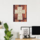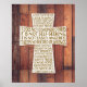 Poster com o verso da Bíblia cristã I Corinthians 13:4-8 em forma de cruz e sentado sobre um fundo de madeira escura. Amor é paciente, amor é gentil. Não inveja. Não se vangloria...